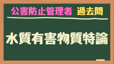 公害防止管理者【水質有害物質特論】令和5年(2023年)公害防止管理者 過去問 フェルたん「水質有害物質特論」は丸暗記科目です。ひたすら過去問を繰り返して頭に叩き込む!これしかありません。一緒にがんばりましょう!水質有害物質特論設問数 15問→ 9問以上正解で合格!試験時間 50分フェルたん気軽にやってみて下さいね!... 2023.10.07公害防止管理者